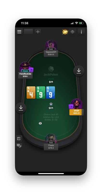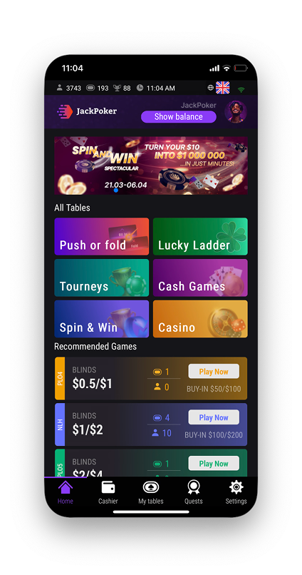 Players can play their best hand at real money tournaments as soon as they download the app. Games launch quickly in all mobile app versions of Jack Poker.