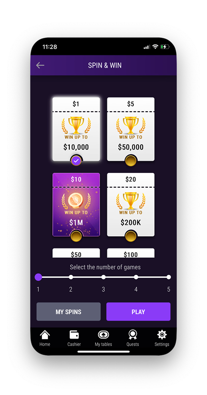 Our rooms offer various poker games, including Texas Hold’Em and Omaha. Players can enjoy classic and push-fold poker in the lobby via the mobile app. In classic games, all options are available, while in push-fold, only all-in and fold are allowed .