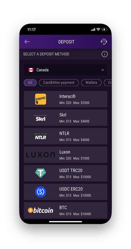 The Jack Poker mobile app includes a mobile cashier making it easy to manage funds directly from your portable device A wide range of payment methods are supported for transactions in the Cashier section. The list is similar to the one on the desktop version.