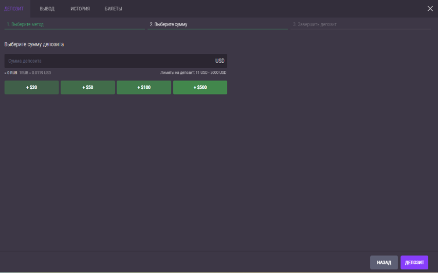 1. Please make a deposit attempt only from a cell phone, for a higher probability of success of the attempt through this method.