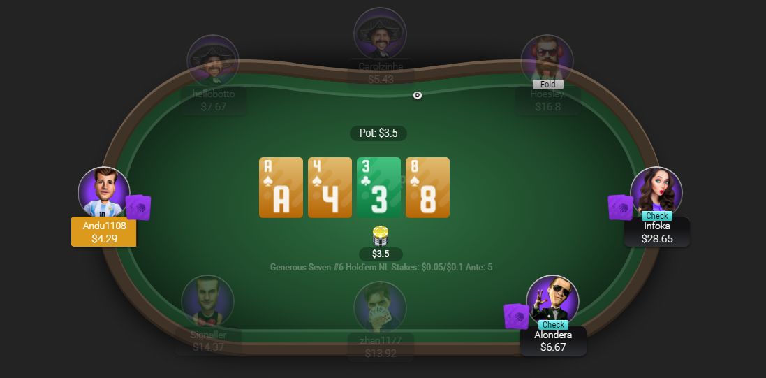 - Check: Pozwala to na przekazanie akcji do następnego zagrania, jeśli nie postawiono żadnego zakładu.