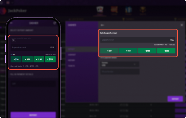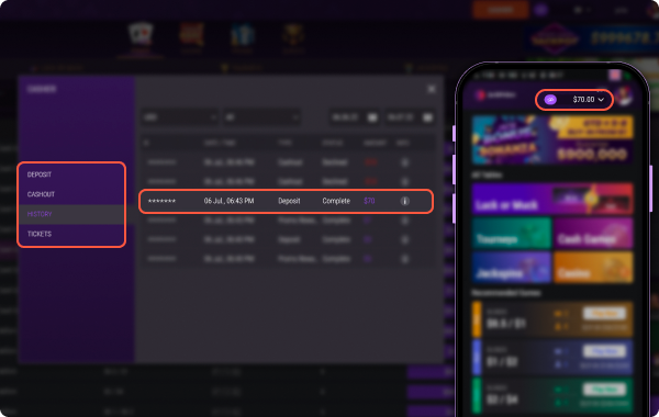 If you are using a mobile phone, tap the “Deposit” button once you are in Cashier.